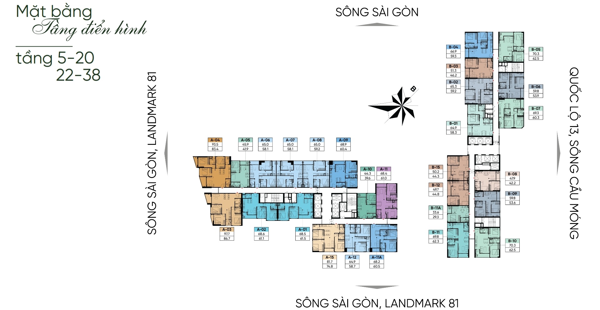 Mặt bằng AT Sai Gon Riverside tầng 5 đến 38